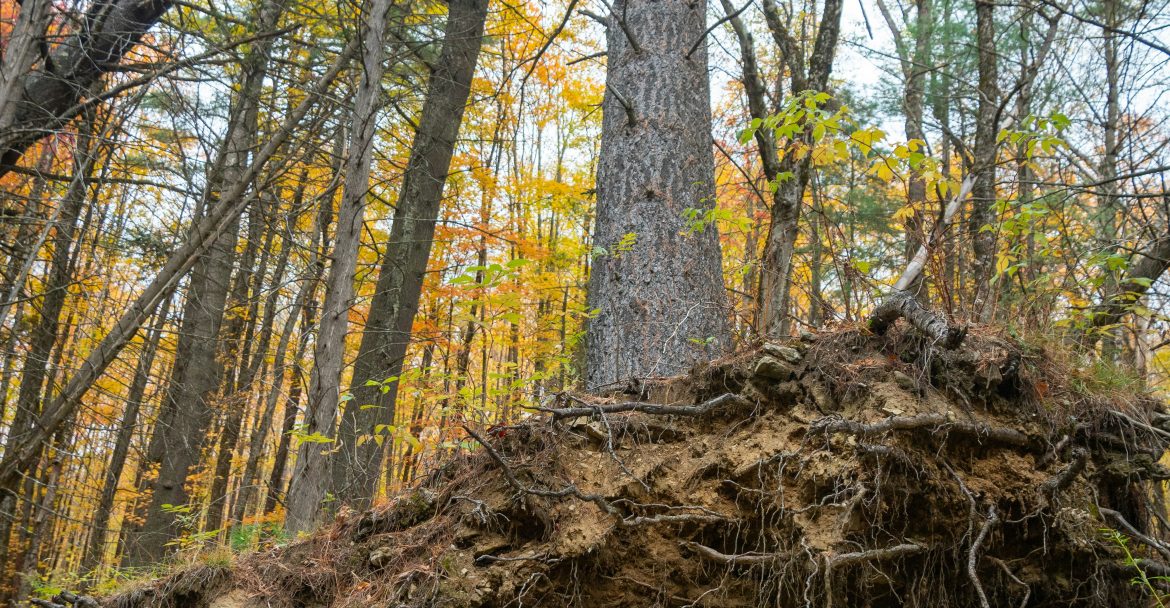 2. Visible “heaving” of soil during wind events.
