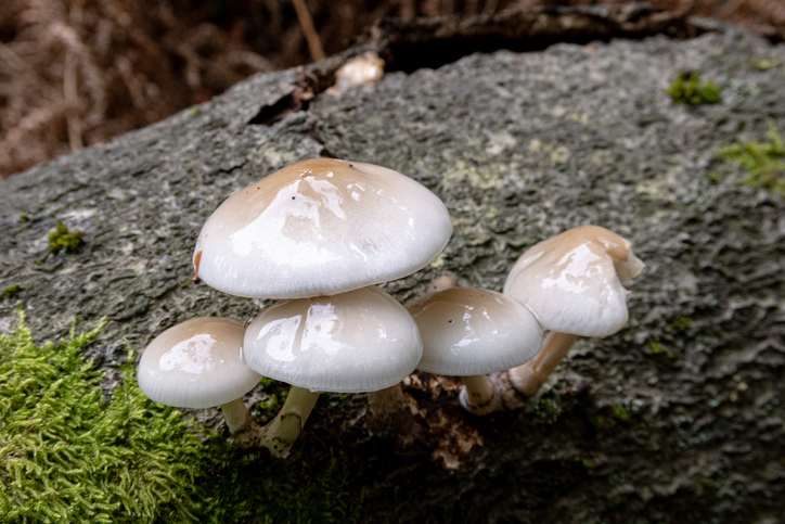 Oudemansiella mucida (Porcelain fungus, Poached egg fungus)